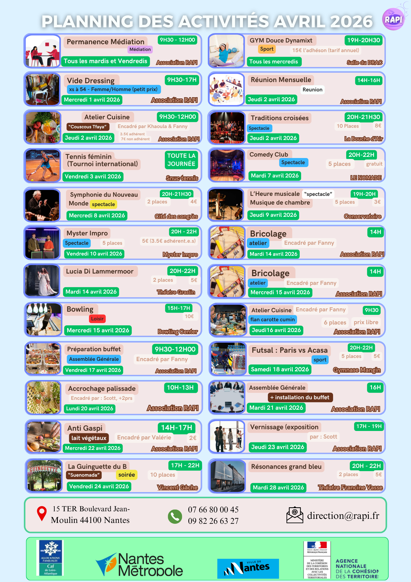 Créée en 2008 dans le quartier Bellevue à Nantes, RAPI est née de la volonté de favoriser les rencontres interculturelles et le partage entre personnes de tous horizons.